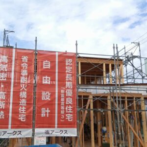9月29日に上棟 建て方を行いました。朝方は少し雨が降っていましたが、回復