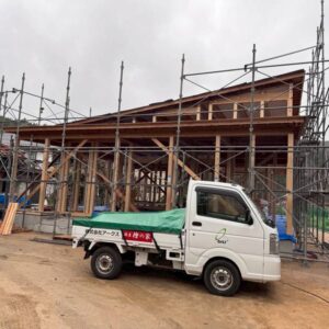 上棟式が終わるころには曇り空になり、終わった後にはポツポツと雨が、、、。