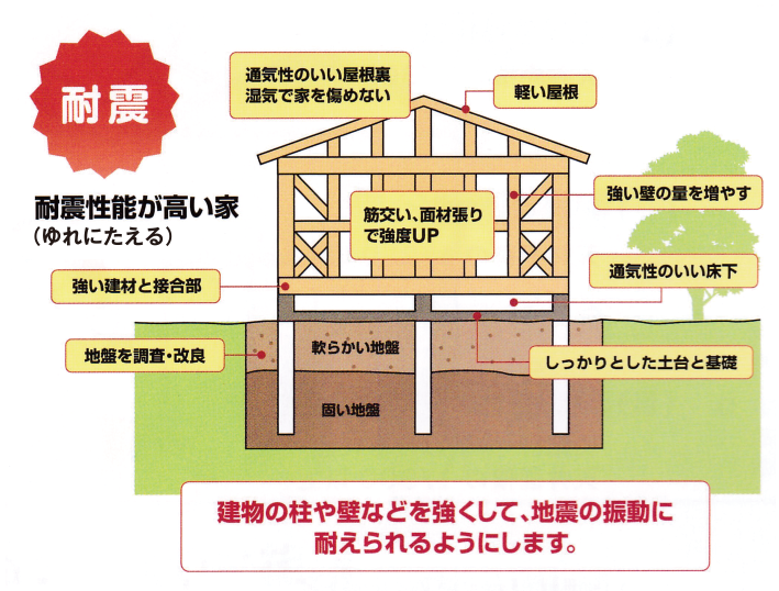 建築基準法の1.2倍の強度を持ち、台風などから大切な家財を守ります。