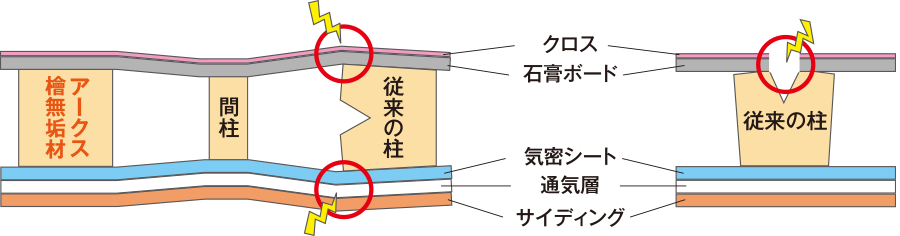 - クロス、石膏ボードなどに亀裂が入りにくい